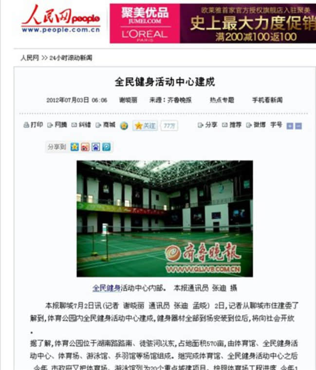 2019年 6月15日,聊城全民健康活动中心森肽基负离子模块工程项目成功通过专家组的竣工验收。济南新活健康电器公司副总经理叶建华参加竣工仪式,并在项目验收报告上签字。至此,以研发生产负离子健康产品为主业的新活电器已经成为政府市政工程负离子模块的供应商,这在全国负离子模块工程中成为先例。