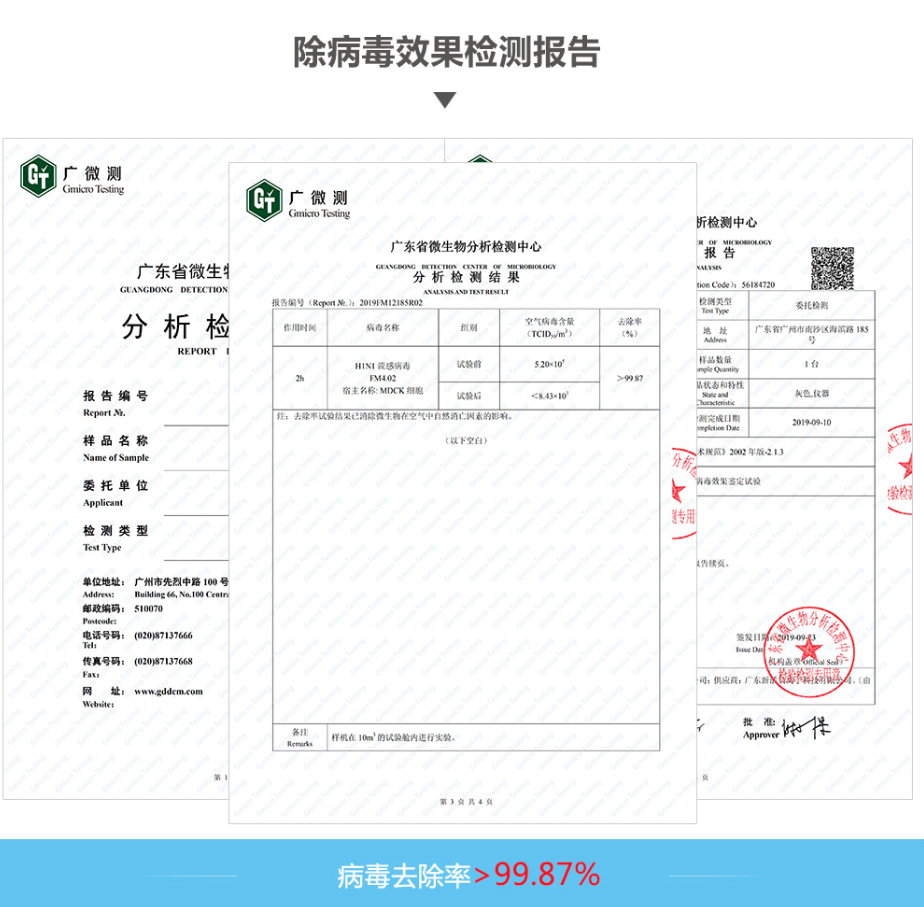 新冠病毒毒株一律控制在国家疾控中心,没有对外开放。但以下的检测报告的采用了与新冠病毒同属于冠状病毒的甲型流感病毒h1n1进行灭活实验表明,负离子可以直接杀灭冠状病毒。并且,负离子pm2.5去除率达到99.8%,细菌去除率达到99.94%,病毒去除率达到99.87%。